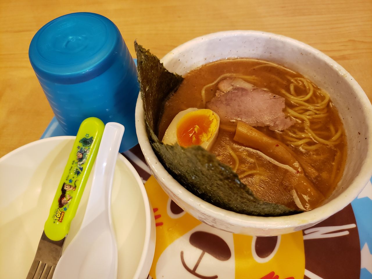 味噌ラーメン与えておくと一人でものすごく静かに黙々と食べてくれるので親も楽って言う。
