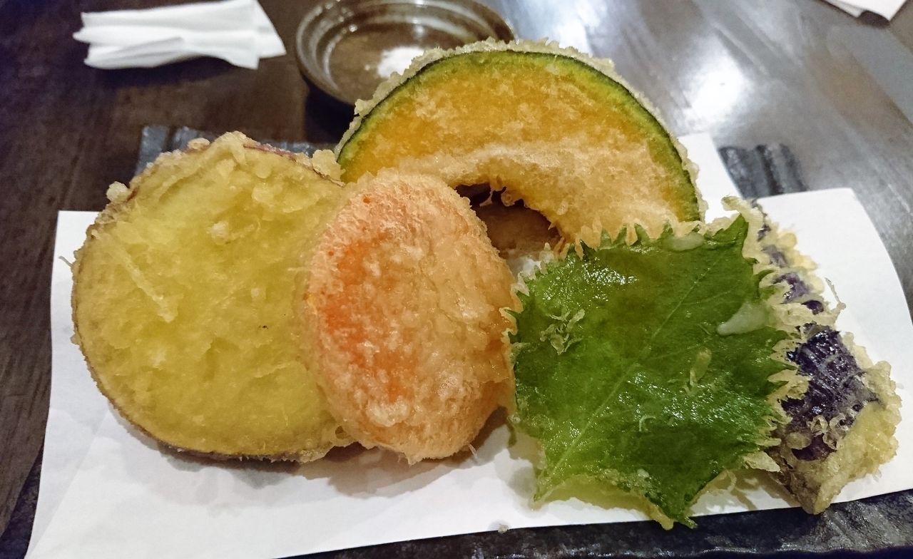 さつまいもとかぼちゃ、舞茸、人参、紫蘇、茄子。