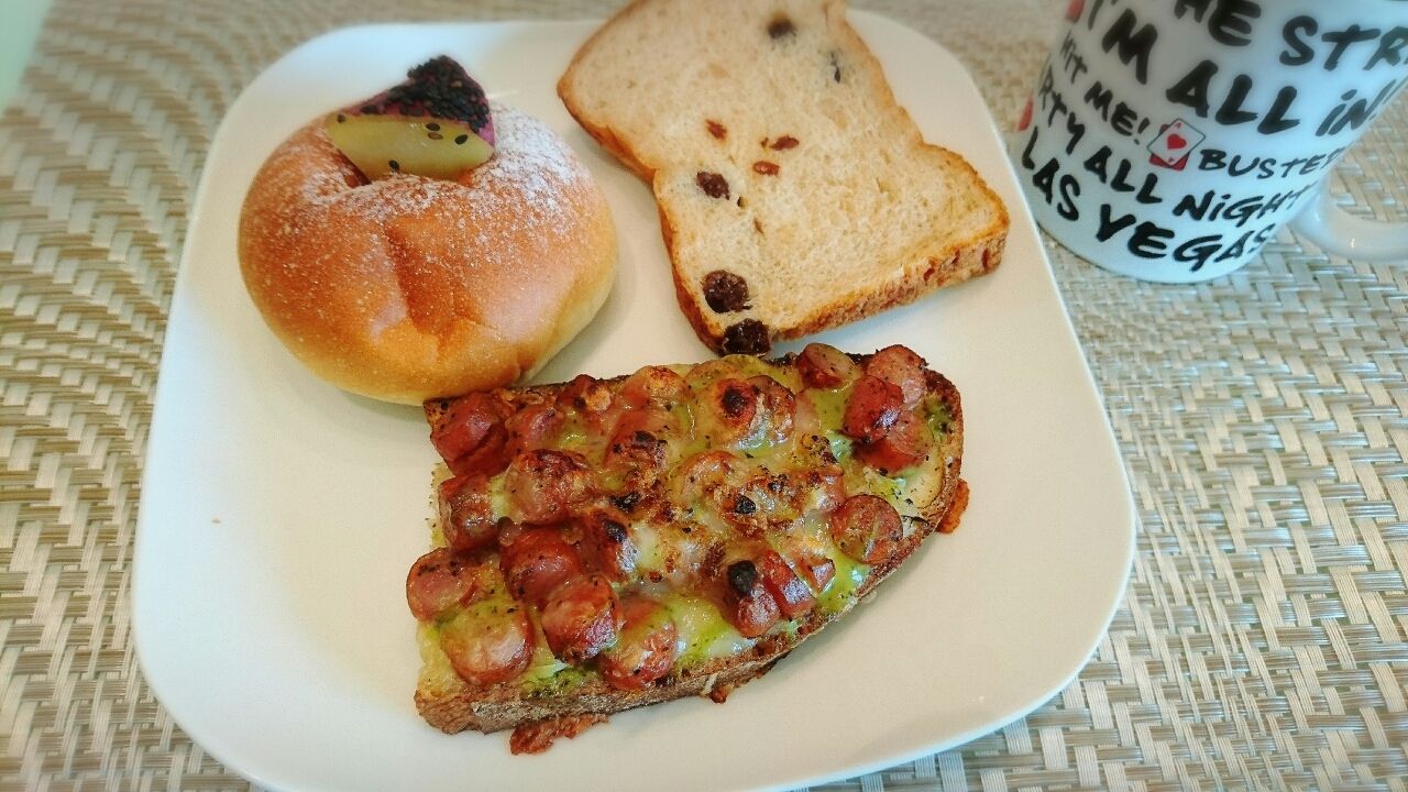 目の前でピザトーストがっついてる私どーなの。