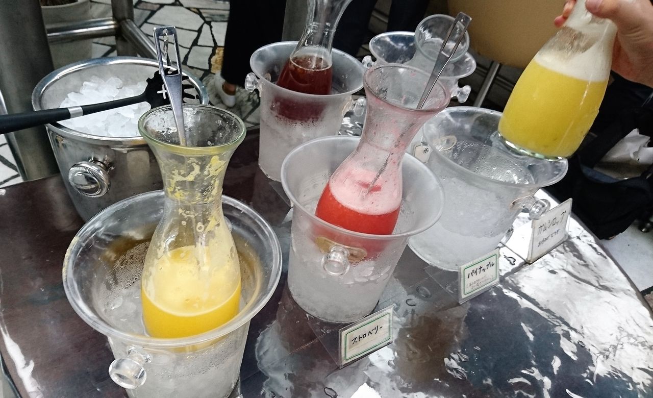 オレンジジュース、ストロベリージュース、パイナップルジュース、アイスティーの他に