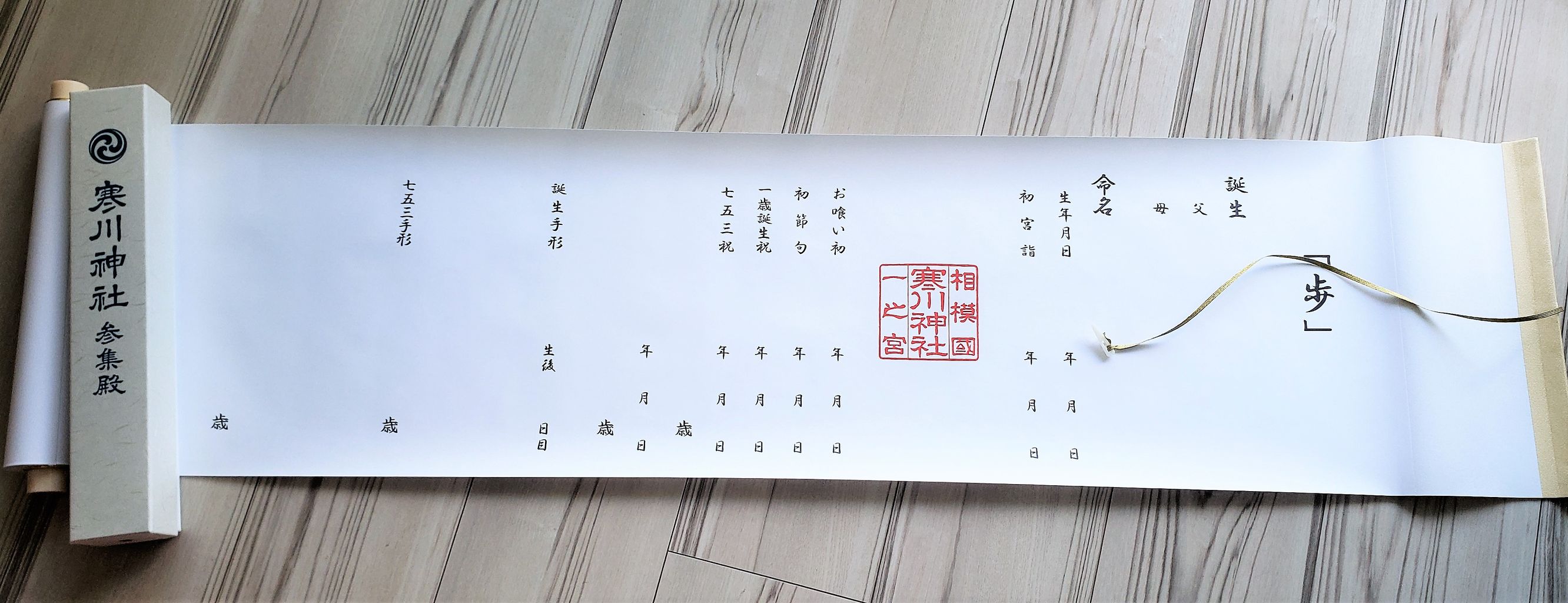 あ、あとこちらのコースには赤ちゃんの出生からが記録できる巻物がお土産についてきます。