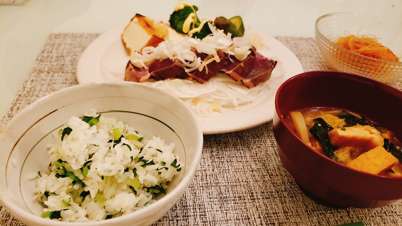 小松菜としらすの塩味がほどよくご飯と混ざって