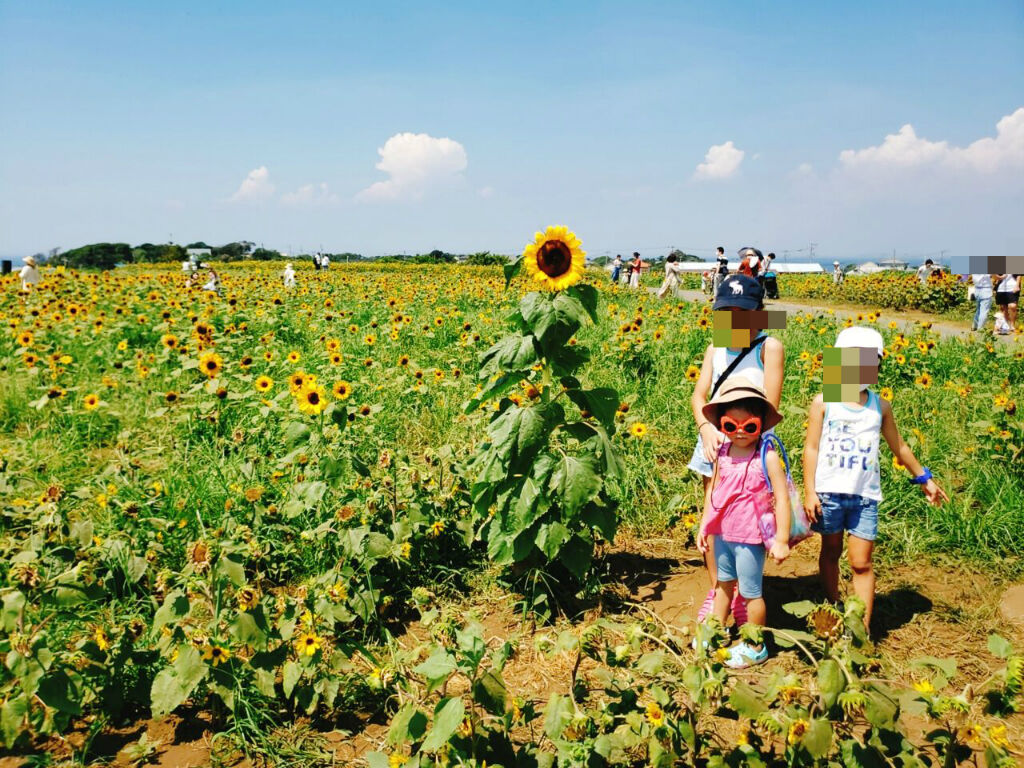1月の時は菜の花畑だった場所が今はひまわり畑になってたよ!満開!