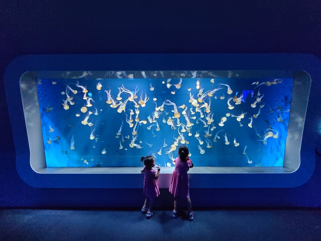 自分が色を塗った魚が床や壁に泳いだりとか