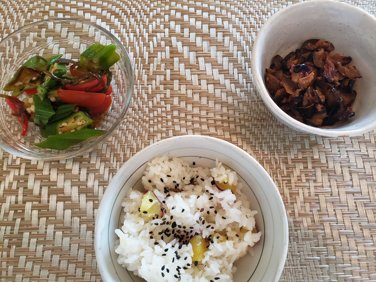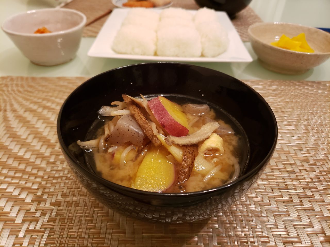 おにぎりとお味噌汁とたくあんと言う昔ながらの献立でした。