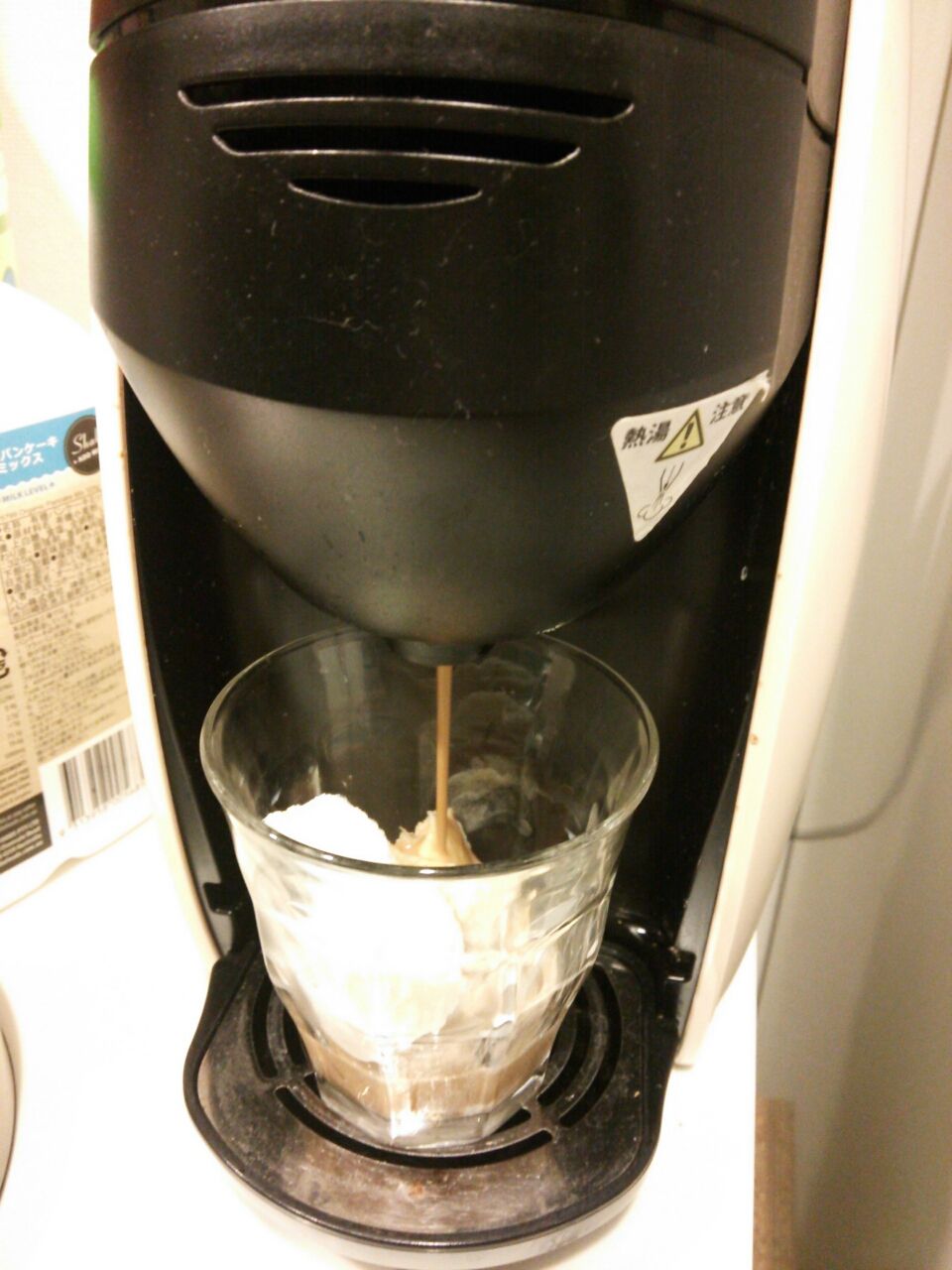 うちは旦那ちゃんの実家から盗んできたバリスタがあるので、まずコーヒーカップにエスプレッソを2杯分抽出しまして、