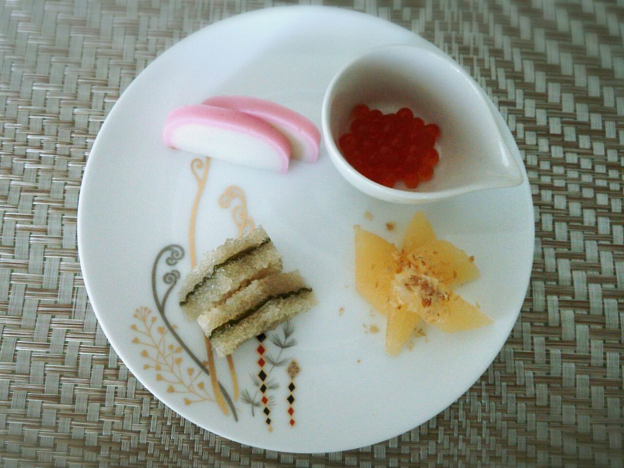 旦那ちゃんの従姉妹の結婚式の引き出物でもらったカタログギフトで頼んだ『魚卵セット』と旦那ちゃんの実家でもらってきた(盗んできた)蒲鉾が唯一のおせち(笑)