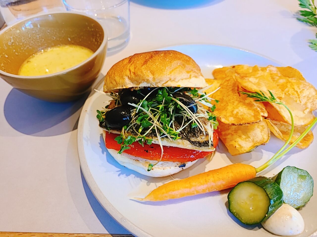 友達と疑心暗鬼に陥ってたら運ばれてきた鯖バーガー。