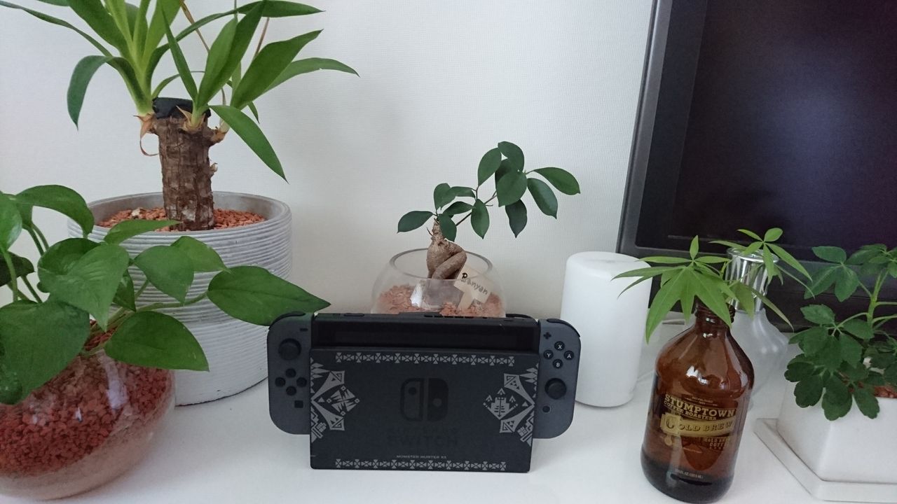 我が家のグリーンちゃん達にまみれるswitchちゅわん。