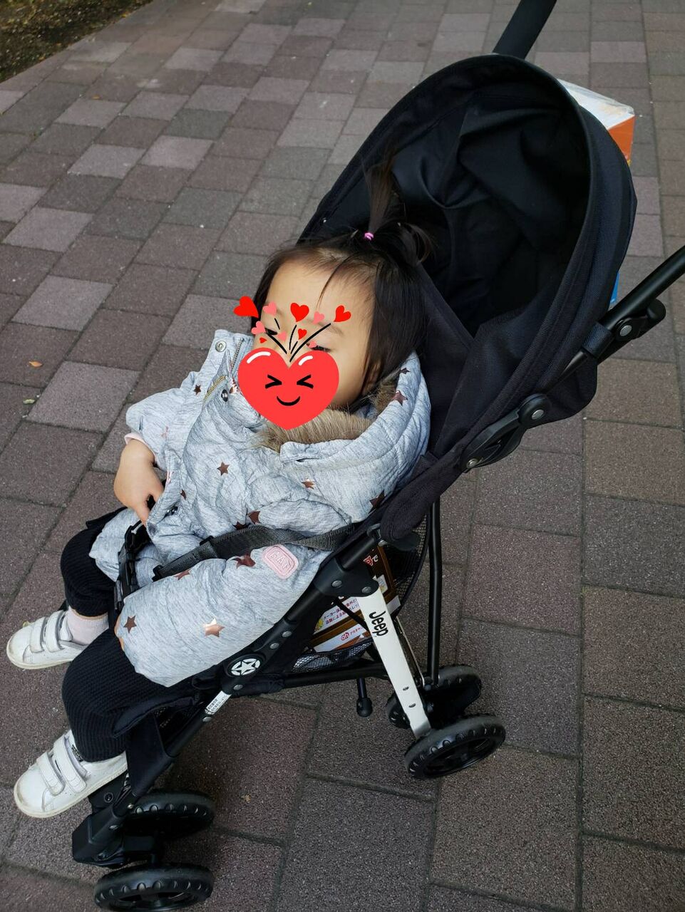 新しいベビーカーに乗せて保育園にお迎えに行くと即