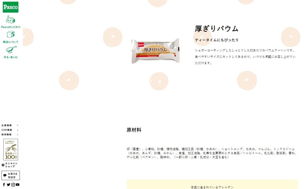 ちなみにどうしても気になって某パンメーカーパ〇コのHP見たら