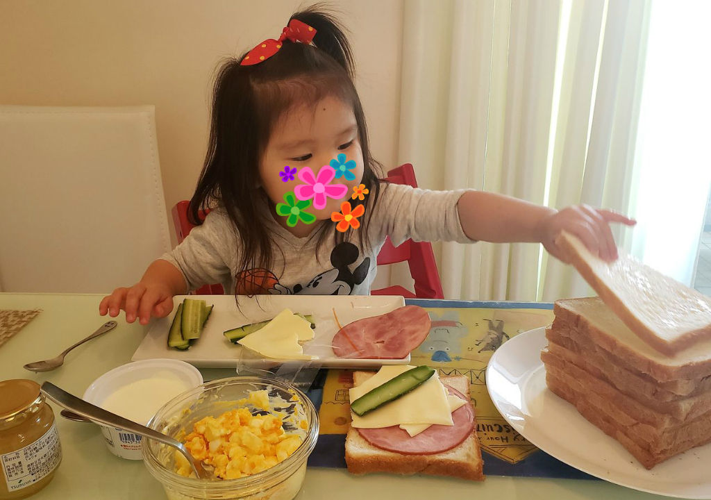 きなこと一緒にサンドイッチ作って